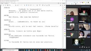 Stare seduti davanti a un computer per tempi lunghi, mantenendo una corretta seduta, è piuttosto difficile. E vedo che anche i ragazzi, seduti dietro ai loro devices, condividono questa fatica: tutti tendiamo a cedere, prima o poi. E prima o poi il mal di schiena ci presenterà il conto. Ecco perchè abbiamo iniziato questa lezione con un esercizio che viene dal mondo Feldenkrais. Scopo dell’esercizio è (anche) quello di scoprire la seduta più consona a mantenere il busto in posizione eretta. Allora ci alziamo e ci sediamo più volte, per sentire come cambi (e migliori) naturalmente la nostra posizione sulla sedia, specie quando sappiamo di doverci rialzare subito; poi passiamo a incurvarci e ingobbirci per peggiorare la seduta senza pietà, a puro scopo sperimentale; basculiamo lentamente il bacino facendo perno sugli ischi, fino a far esaurire il movimento (ma continuando a tenerlo dentro come “immagine”), per giungere così a riconoscere finalmente la posizione più stabile e più comoda. Posizione che durerà, ahinoi, fino alla prima distrazione. Ora però questo “strumento” per rimettersi in bolla è anche a loro disposizione e dato che la vita davanti a questi schermi sarà lunga, spero che ne vorranno approfittare. Questo esercizio è servito anche a risvegliare la nostra attenzione, quindi ho proposto ai miei allievi attori una breve serie di esperienze sensoriali adatte a stimolarne la memoria emotiva attraverso l’analisi di oggetti di uso comune. Con la raccomandazione di riprovarci anche in altri momenti e contesti, per permettere all’esercizio di risultare più efficace. Dopo questa prima mezz’ora preparatoria abbiamo aperto il nostro copione per analizzare alcune scene e ricavarne suggerimenti utili a definire e contestualizzare meglio il mondo dei personaggi che abitano la nostra storia. Stabiliamo subito una regola non derogabile: l’attore non deve giudicare il personaggio, bensì deve sforzarsi di comprendere i motivi che ne determinano il comportamento. Abbiamo poi analizzato il passaggio debole di una scena, dove sarà necessario inserire una descrizione più dettagliata del motivo per cui “Agata” ha mollato “Tanica”: lascio il compito agli interessati e M.V. ha già qualche idea su cui lavorare. Mi dicono che sono in cantiere anche altre proposte di personalizzazione del testo: arriveranno in settimana e io le aspetto con curiosità! Certo è che questi ragazzi sono bravissimi a resistere a queste condizioni, accettando le limitazioni imposte dalla videoconferenza. È chiaro, stanno facendo di necessità virtù, prendendo quello che si può prendere. Ma non si accontentano, siamo tutti avvisati.